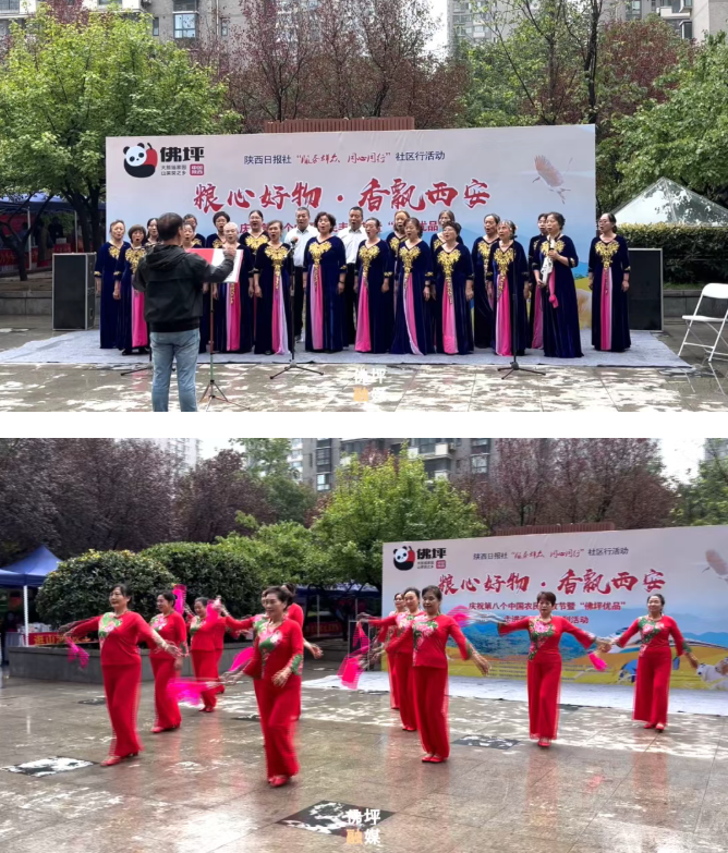 活动分会场,高陵区长庆龙凤园小区广场热闹喧腾,合唱、诗朗诵等丰富多彩的文艺节目引得大批居民围观。清甜的土蜂蜜、鲜味十足的羊肚菌等佛坪特色农产品轮番“圈粉”,火爆场面将活动推向高潮。