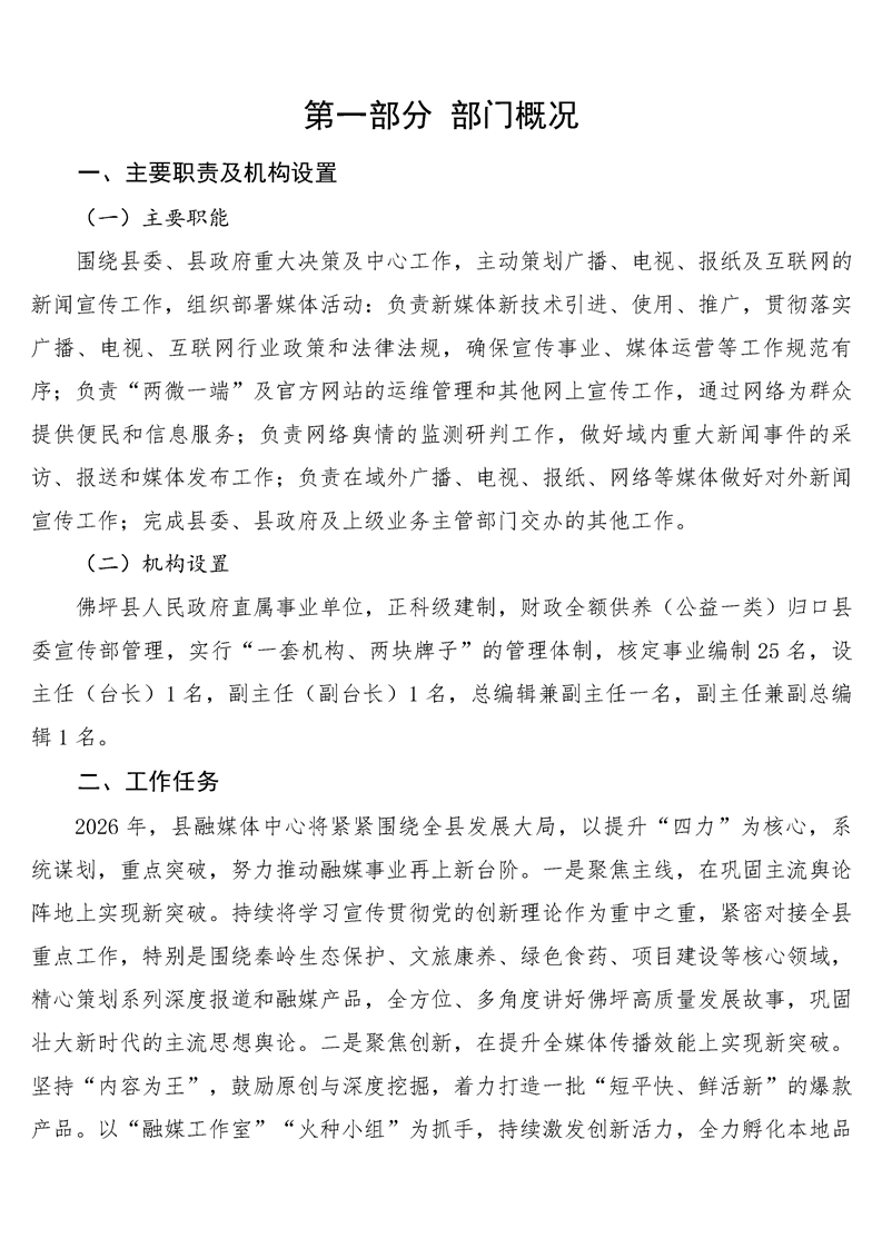 佛坪县融媒体中心2026年部门预算公开说明