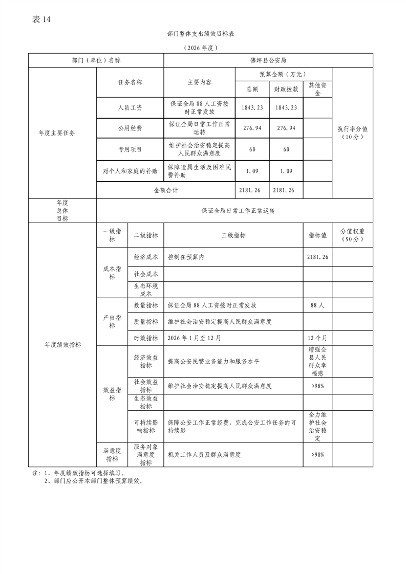佛坪县公安局交通管理大队2026年单位预算公开说明