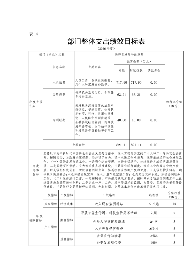 佛坪县发展和改革局2026年部门预算公开说明