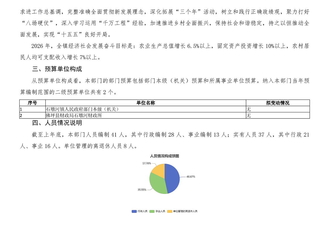佛坪县石墩河镇人民政府2026年单位预算公开说明