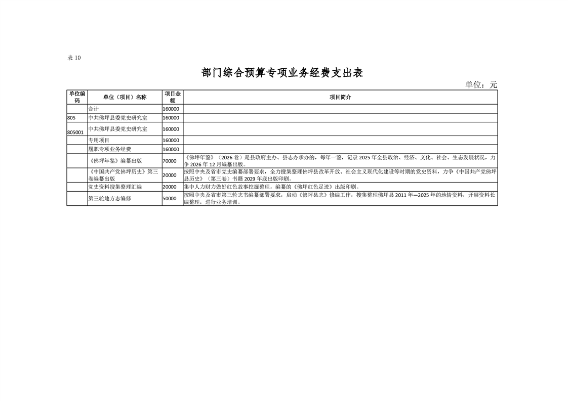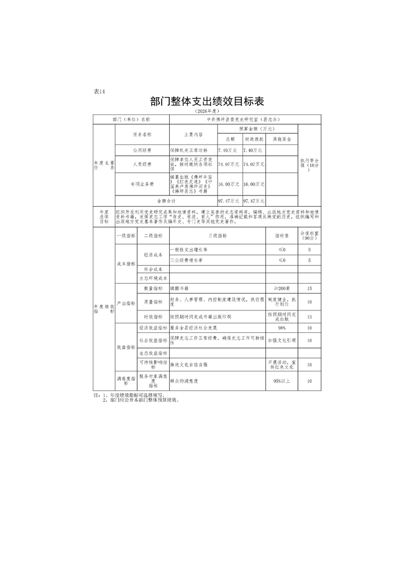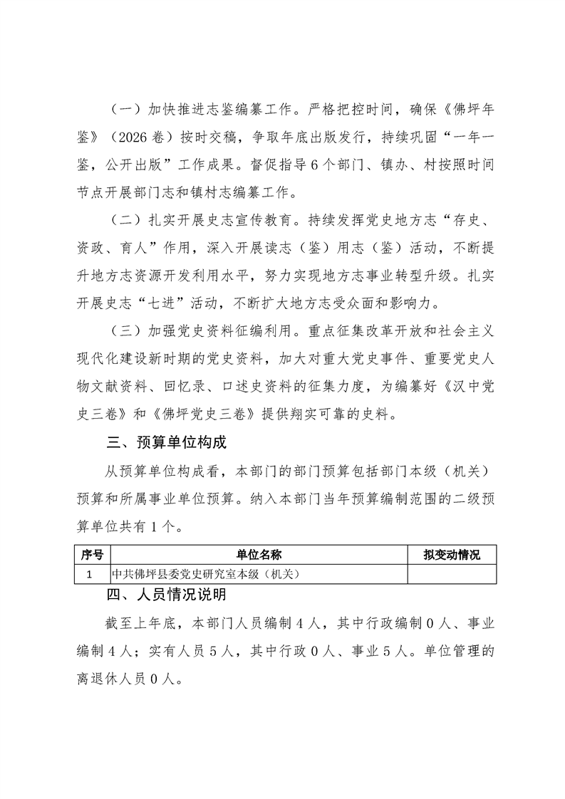 中共佛坪县委党史研究室2026年部门预算公开说明