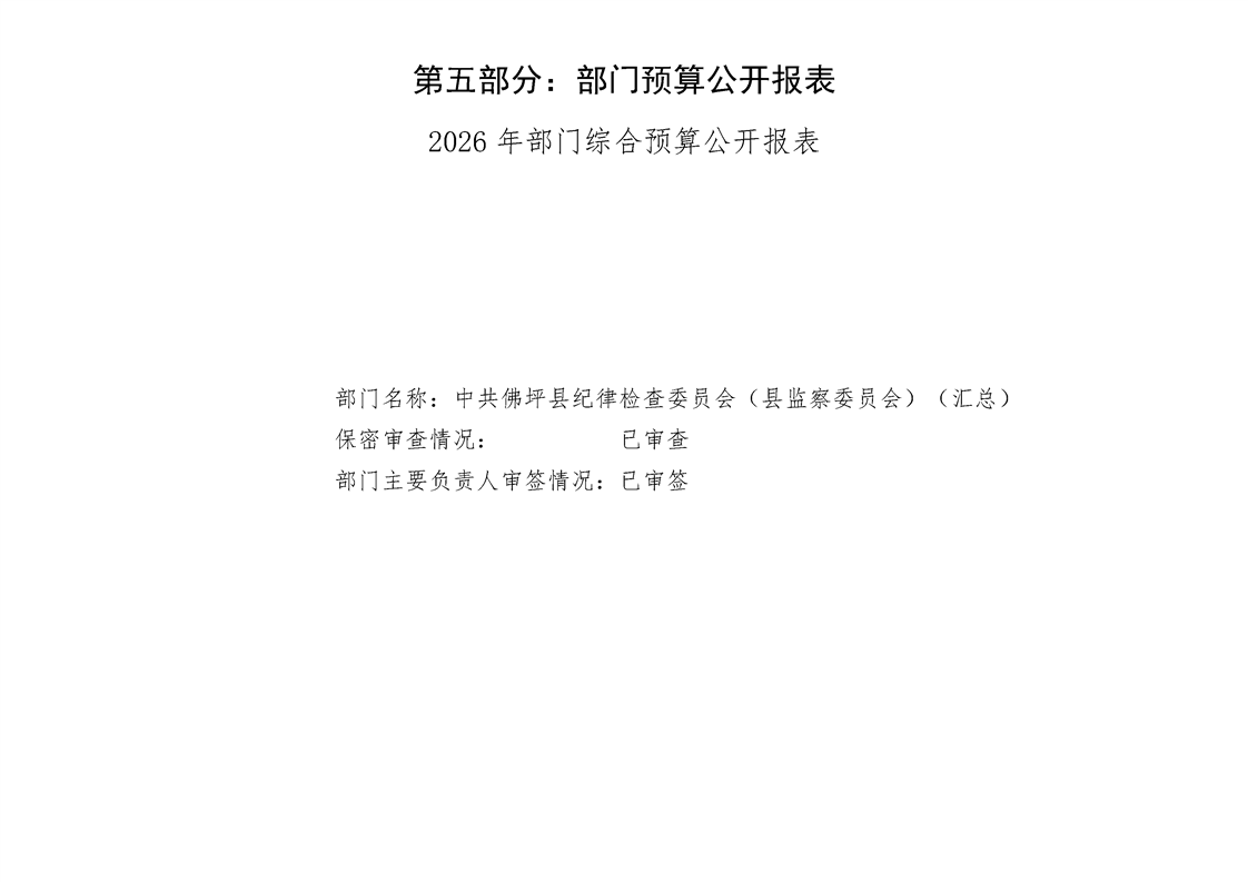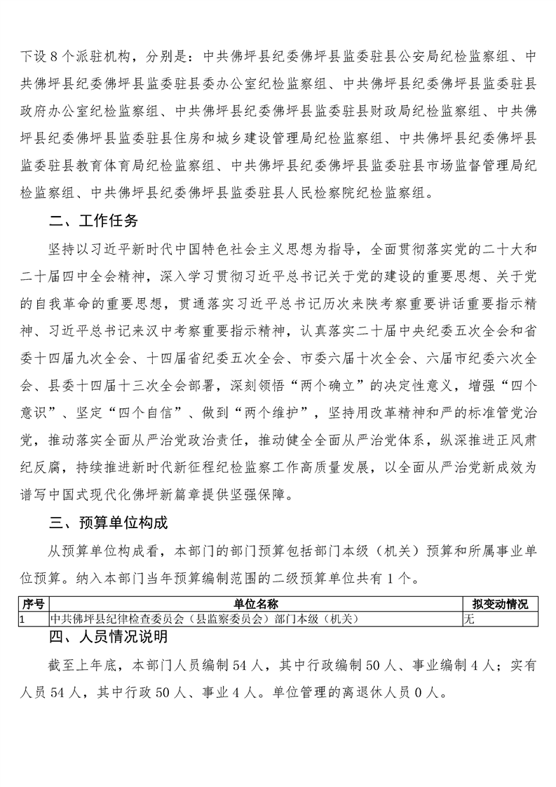 中共佛坪县纪律检查委员会(县监察委员会)2026年部门预算公开说明