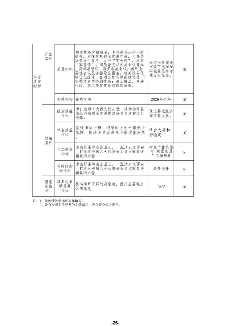 中共佛坪县委办公室2026年部门预算公开说明
