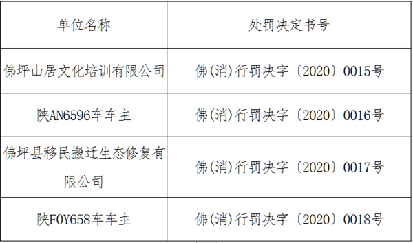 为了广大市民能够及时了解消防行政处罚办理的结果,现将2020年第四季度佛坪县消防大队办理的行政处罚公示如下: