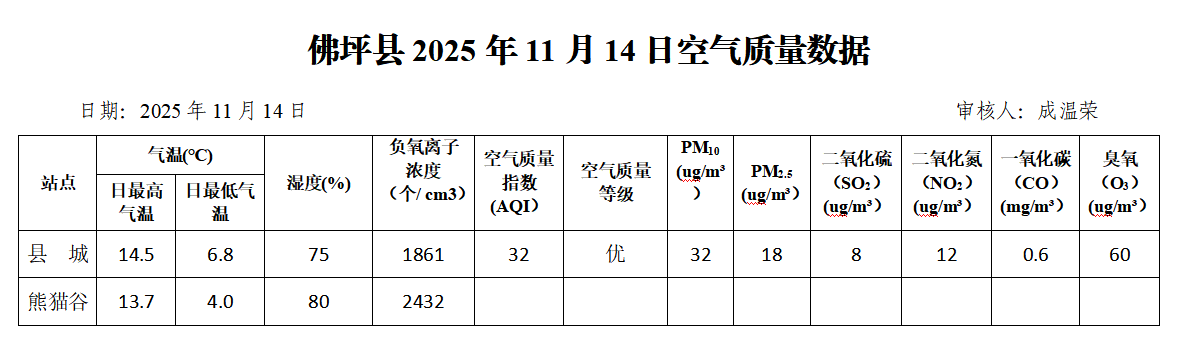 佛坪县2025年11月14日空气质量数据