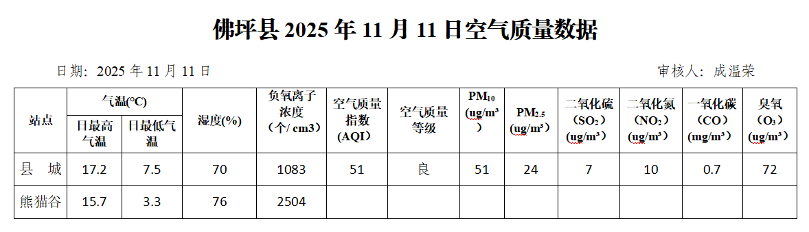 佛坪县2025年11月11日空气质量数据