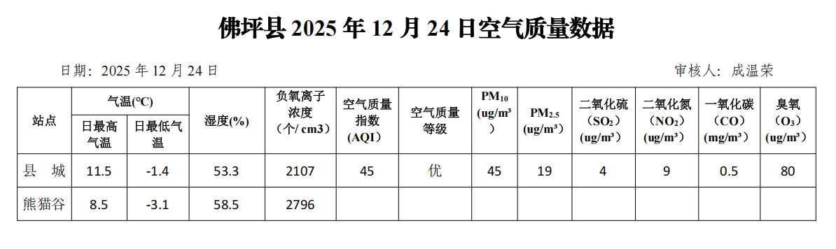 佛坪县2025年12月24日空气质量数据