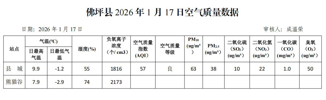 佛坪县2026年1月17日空气质量数据