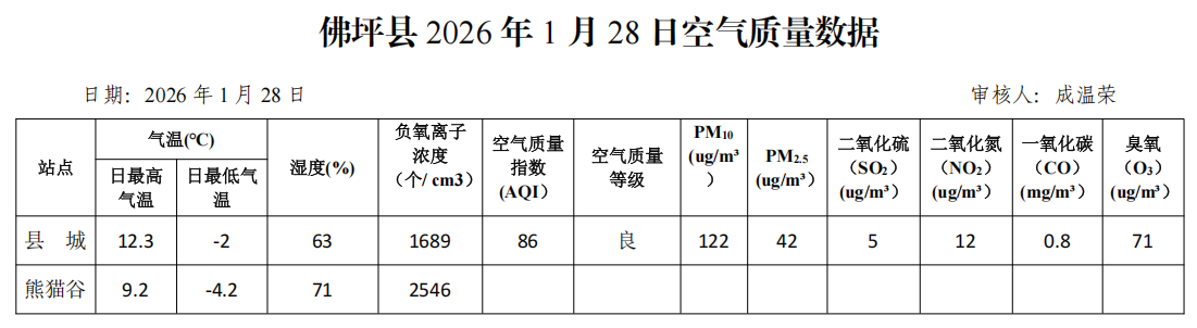 佛坪县2026年1月28日空气质量数据