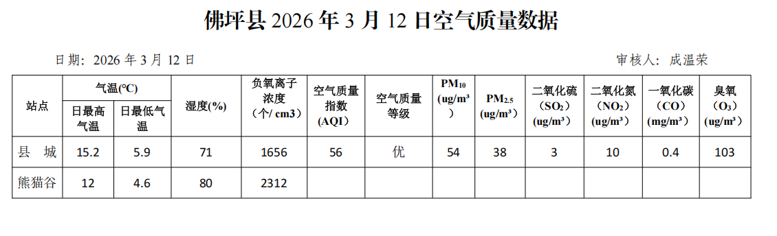 佛坪县2026年3月12日空气质量数据