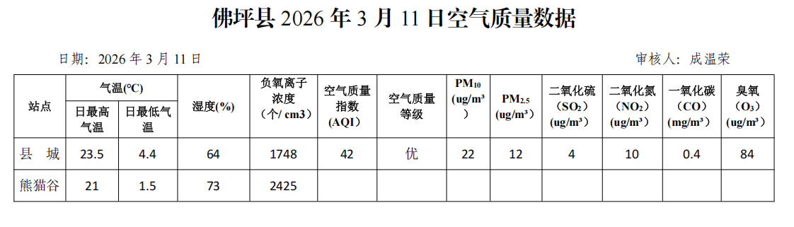 佛坪县2026年3月11日空气质量数据