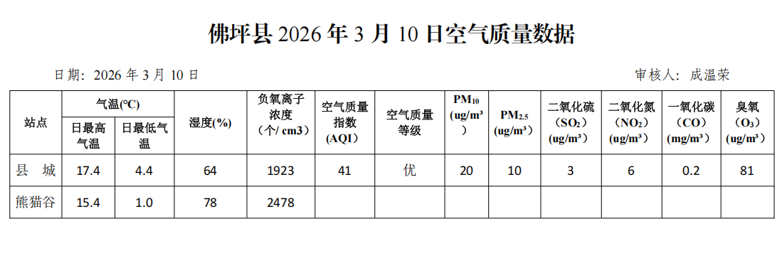 佛坪县2026年3月10日空气质量数据