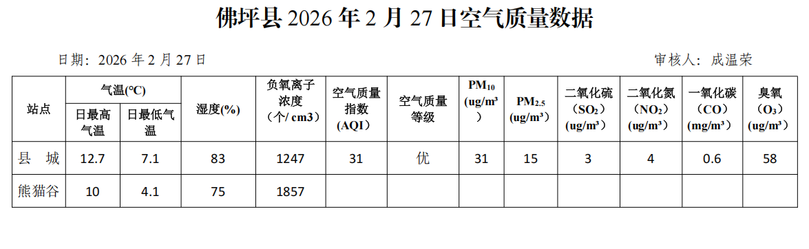 佛坪县2026年2月27日空气质量数据