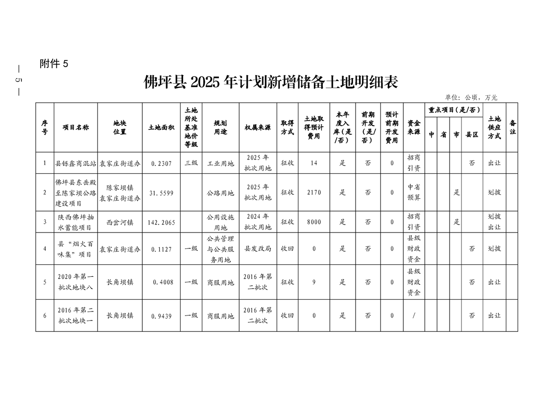 附件:1.《佛坪县2025年度土地储备项目情况统计表》