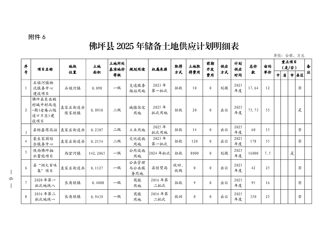 9.《佛坪县2025年度土地储备计划指标汇总表》