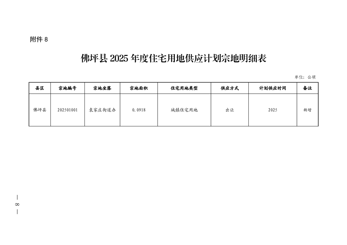 8.《佛坪县2025年住宅用地供应计划宗地明细表》