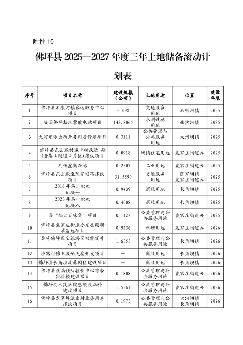 10.《佛坪县2025—2027年度三年土地储备滚动计划表》