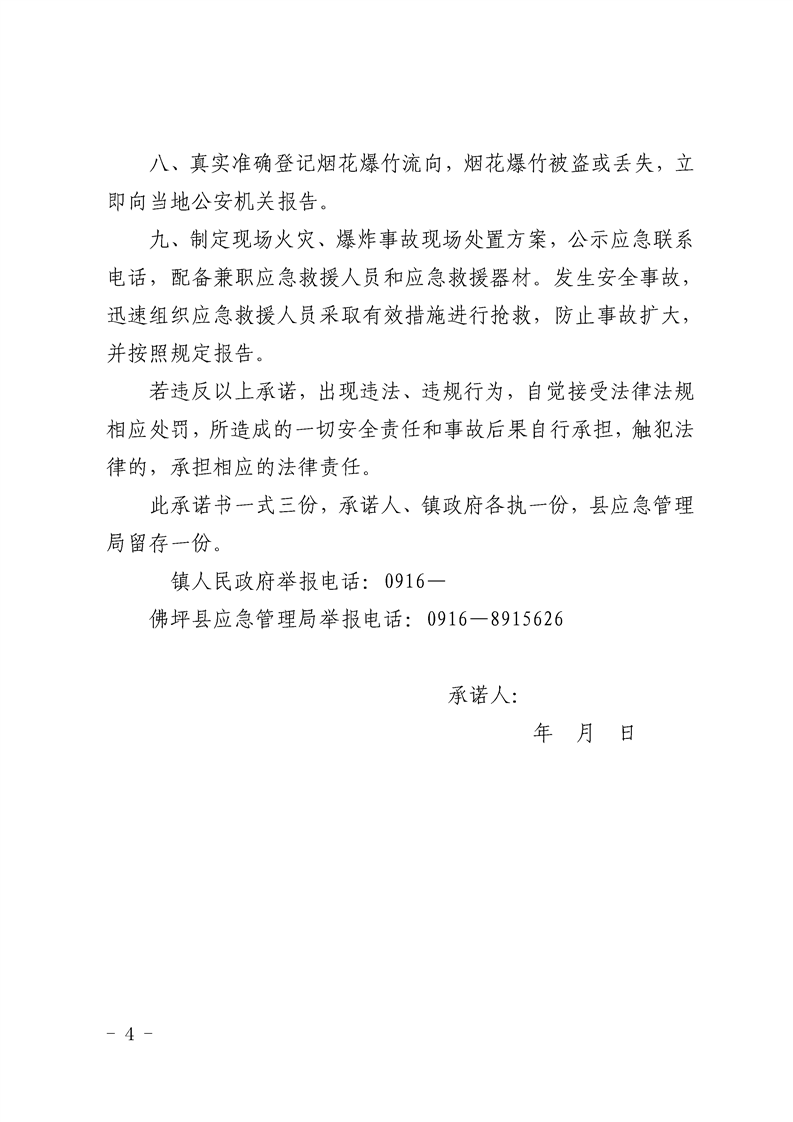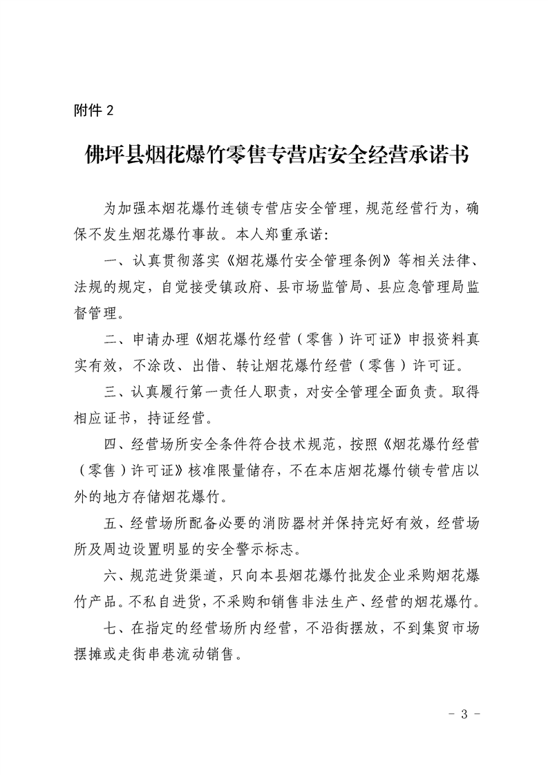 (二)《佛坪县烟花爆竹零售专营店安全经营承诺书》(附件2);