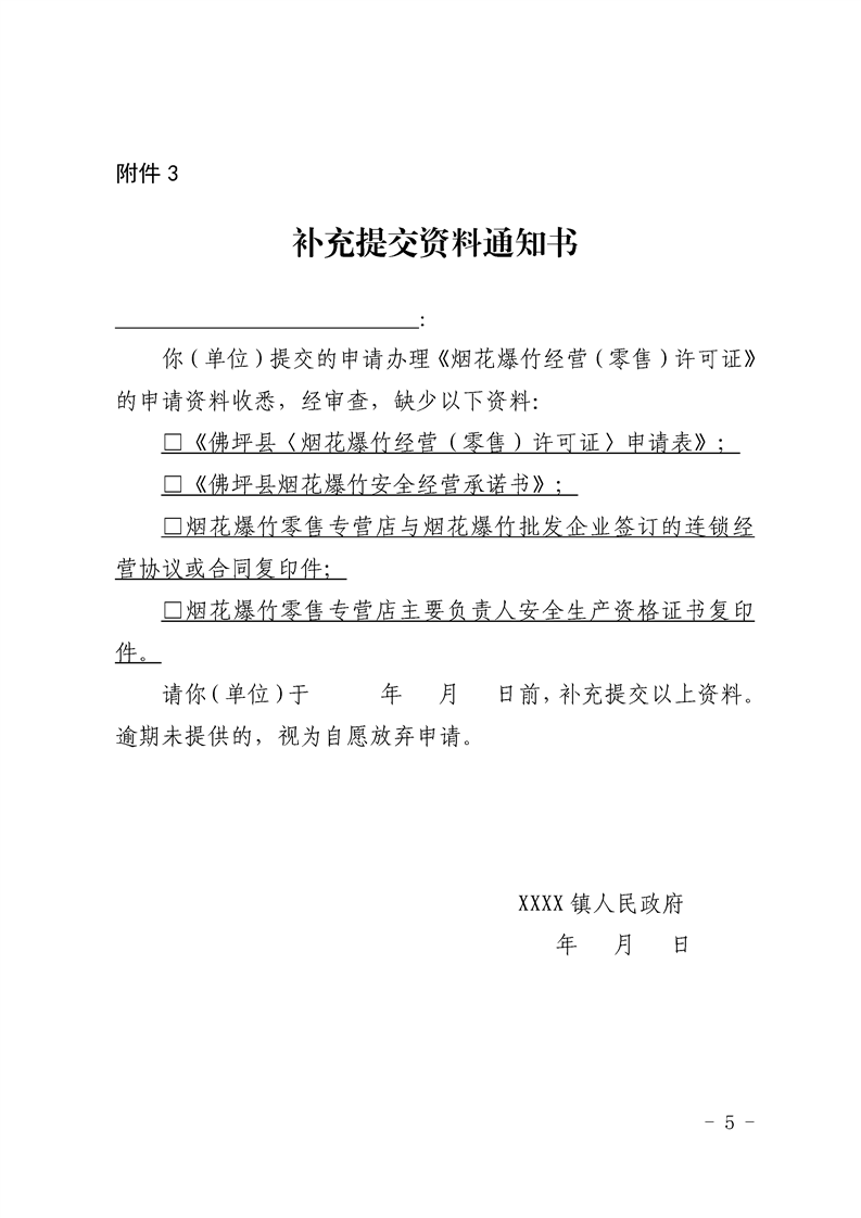 (四)符合佛坪县应急管理局《关于调整全县烟花爆竹经营(零售)布点规划的通知》要求;