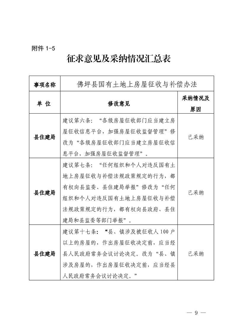 (一)承办部门调研、起草等情况:由佛坪县自然资源局牵头,县住建局共同参与,对照汉中市办法,结合本县实际梳理细化条款,形成《佛坪县国有土地上房屋征收与补偿办法》。