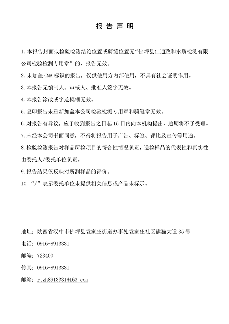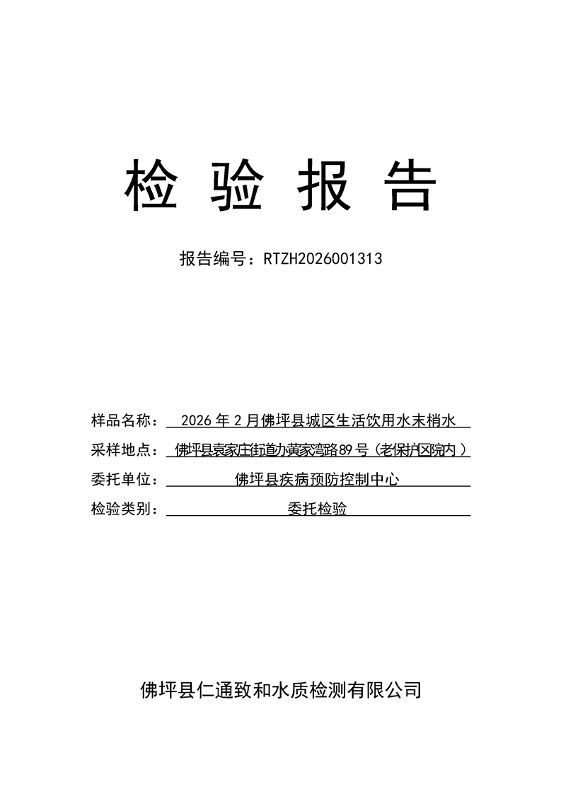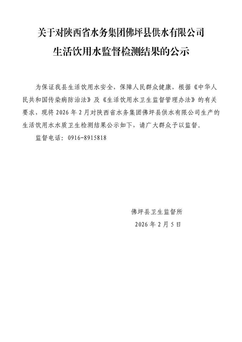 关于对陕西省水务集团佛坪县供水有限公司生活饮用水监督检测结果的公示