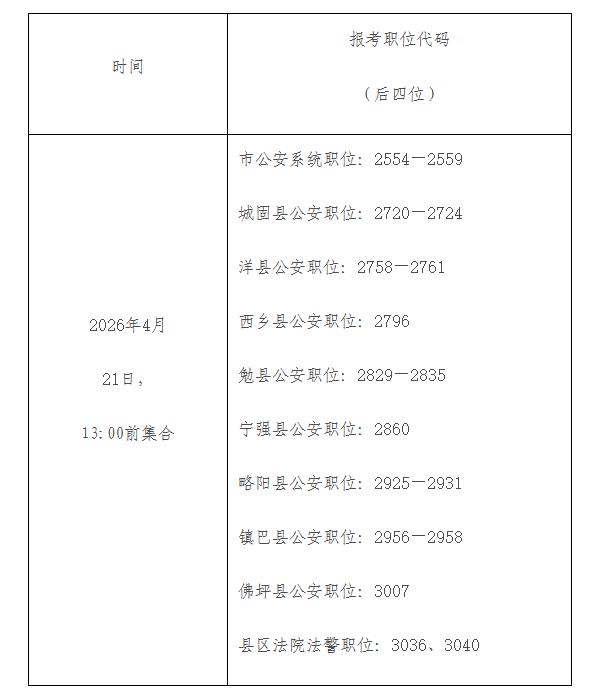 按照《陕西省2026年统一考试录用公务员公告》相关规定及全省统一安排,现将汉中市考试录用公务员面试资格复审及报考人民警察职位人员体能测评有关安排通知如下: