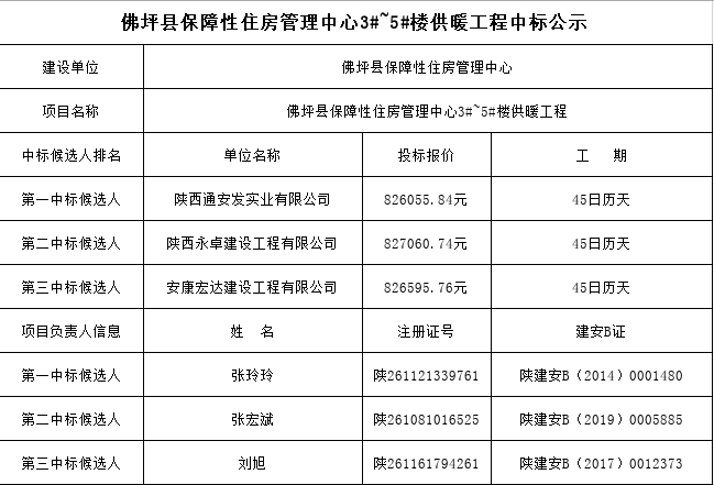 佛坪县保障性住房管理中心3#~5#楼供暖工程中标公示