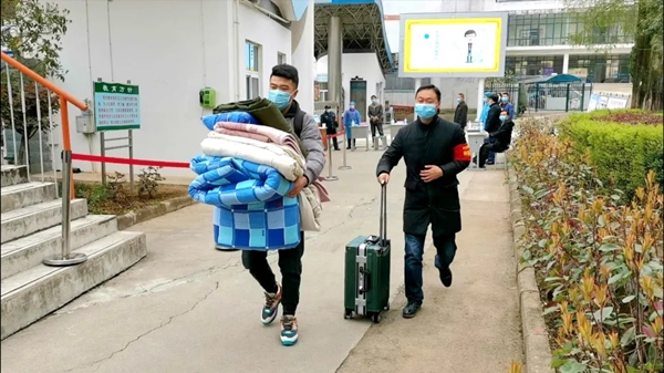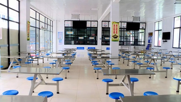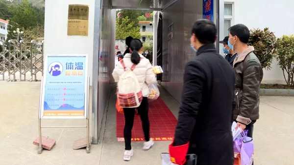 在校门口,工作人员对每一名学生进行入校消毒、体温监测等工作。班主任和其他老师指导学生进行信息登记,帮助学生将被褥、书包、脸盆等生活用品搬送到宿舍,全力为学生提供服务。学校的led大屏及醒目位置播放防疫宣传片及张贴宣传画,学校食堂等公共场所卫生状况干净整洁。校园呈现出一派勃勃生机的景象。
