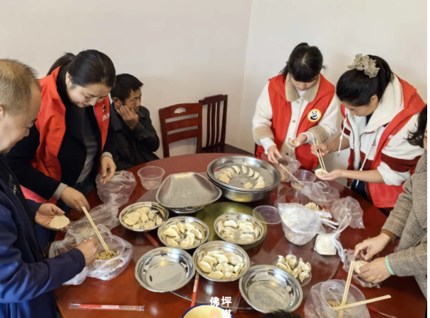 在塘湾村独居老人高奶奶家中,志愿者们分工协作包饺子,大家忙得不亦乐乎,一边包饺子一边拉家常,气氛温馨融洽。“这么多人一起过节,饺子吃起来都格外香!”老人话语间,满是幸福与满足。随着热气腾腾的饺子出锅,房间里香气四溢。