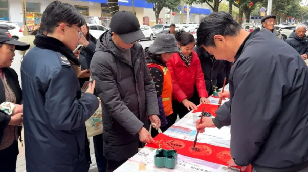 文化惠民专区前,书法家们挥毫泼墨,将立春祝福、马年吉语与文明新风融入笔墨,写就的春联福字被村民争相领取。免费拍摄全家福服务,定格春日团圆瞬间。惠民服务专区更是“一站式”满足村民需求:多部门联动提供普法咨询、护林防火宣传、健康义诊及反诈知识普及等服务,将政策解读、安全提醒和健康关怀送到村民身边,让村民在家门口享实惠、得温暖。村民王大爷称赞道:“医保、法律这些事讲得明明白白,服务周到贴心,这样的活动很有意义!”