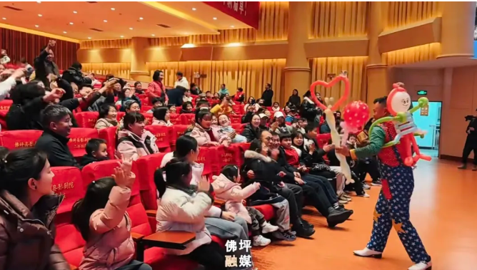 当晚七点,音乐会正式拉开帷幕。剧场内灯光璀璨、暖意融融,现场气氛热烈非凡。佛坪本土乐队——山茱萸花乐队倾情献唱,以质朴动人、饱含深情的歌声,诉说出对家乡的热爱与眷恋,生动展现了佛坪独特的人文底蕴与生态之美。演出间隙,趣味互动游戏接连上演,可爱的熊猫玩偶惊喜派送、精彩杂技表演惊艳登场,气球达人还为观众送上创意十足的造型气球,引得现场掌声雷动,欢声笑语不断,整场活动沉浸在欢乐祥和的氛围中。