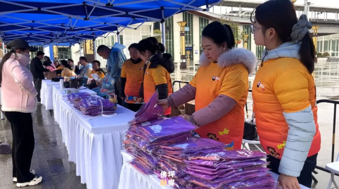 3月14日,在佛坪高铁站出口,“萸您相遇·春满佛坪”的主题道旗与展板整齐排列,志愿者们早早到岗,以饱满的精神状态投入工作。咨询台前,志愿者们分工协作,有序开展物资包发放、路线指引、住宿咨询等贴心服务,耐心解答游客疑问。