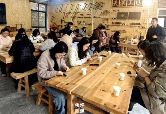 在王家湾曲尺坊木工学堂,女职工们体验传统手工技艺。在非遗老师指导下,大家精心打磨、镶嵌、制作出一支支独具匠心寓意“祈福安康”的山茱萸发簪,将佛坪春天的气息带回家。在动手制作中感受匠人精神,让传统文化在巾帼传承中焕发新彩。