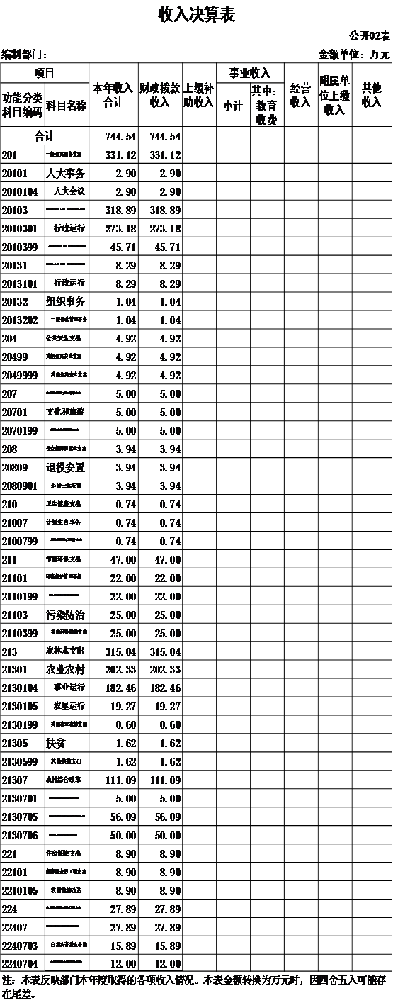 一般公共预算财政拨款支出决算表 (按功能分类科目) |
