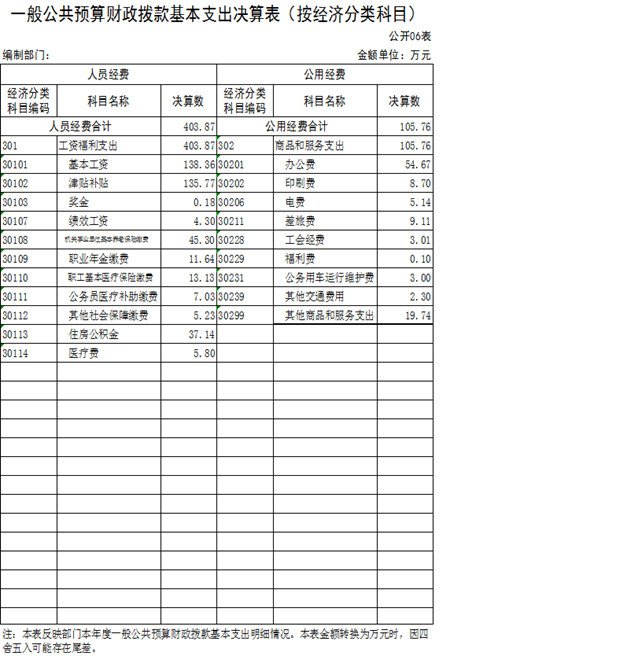 一般公共预算财政拨款基本支出决算表 (按经济分类科目) |