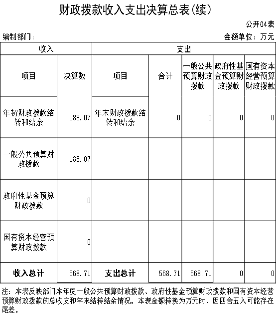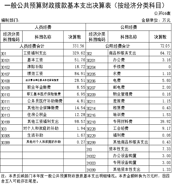 注:本表反映单位本年度各项支出情况。本表金额转换为万元时,因四舍五入可能存在尾差。 |