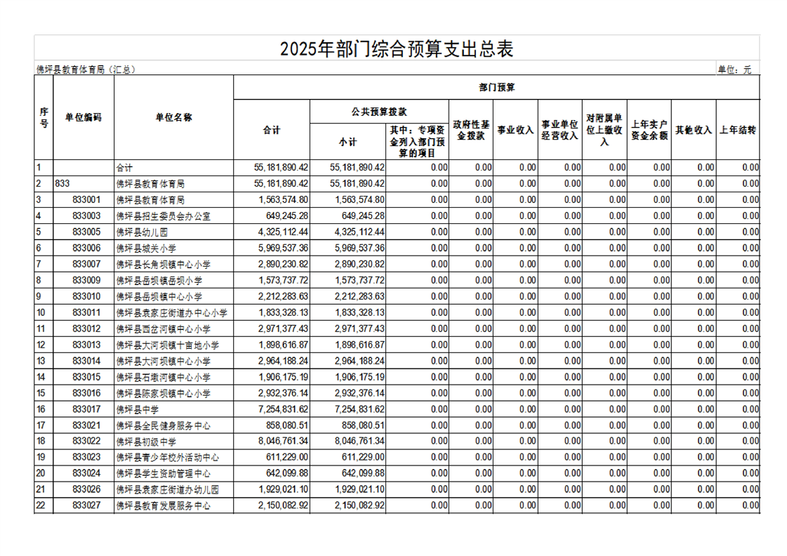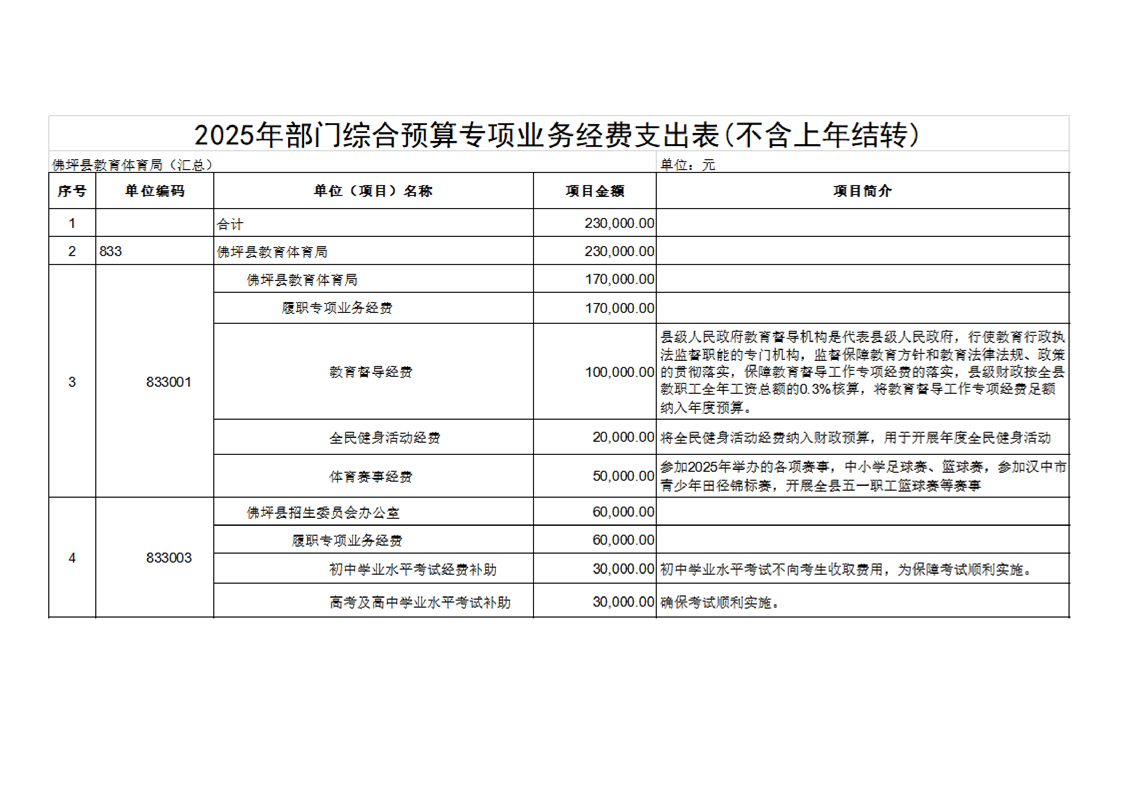 佛坪县教育体育局(本级)2025年单位预算公开(下载预览)