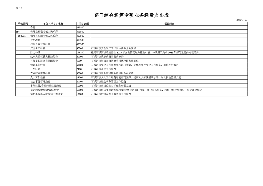 佛坪县石墩河镇人民政府2026年部门预算公开说明