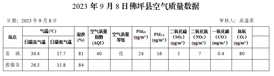 佛坪县2023年9月8日空气质量数据