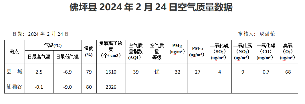 佛坪县2024年2月24日空气质量数据