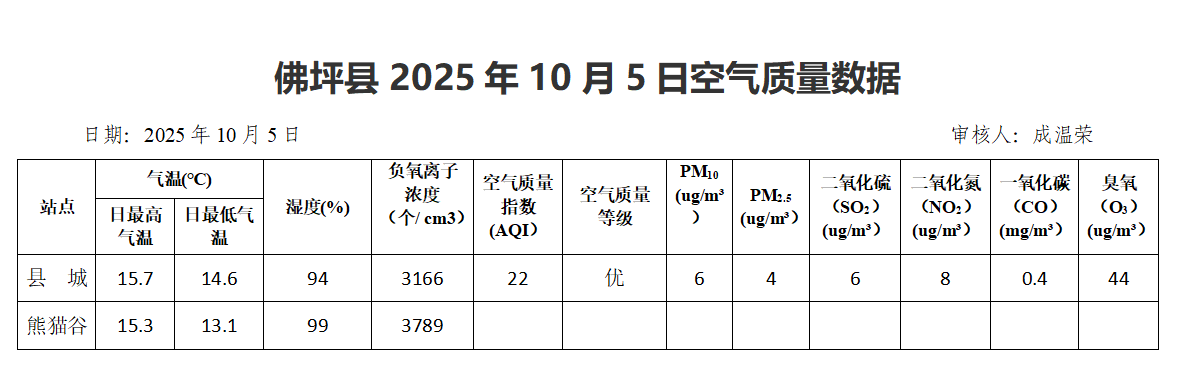 佛坪县2025年10月5日空气质量数据