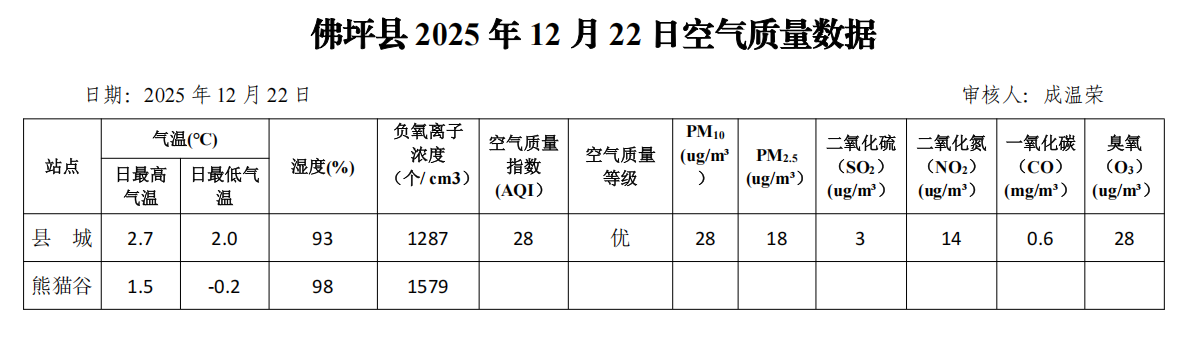 佛坪县2025年12月22日空气质量数据