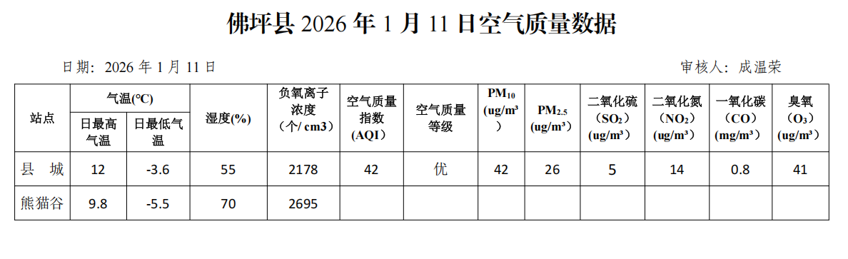 佛坪县2026年1月11日空气质量数据