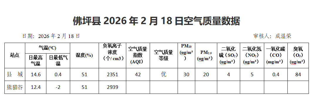 佛坪县2026年2月18日空气质量数据