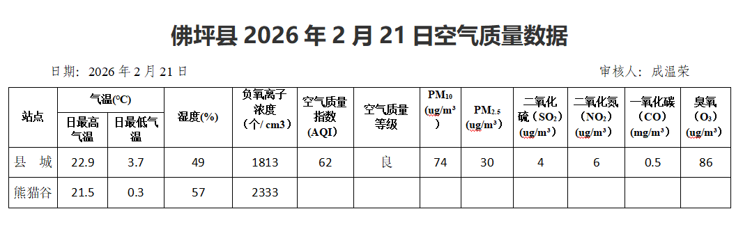 佛坪县2026年2月21日空气质量数据