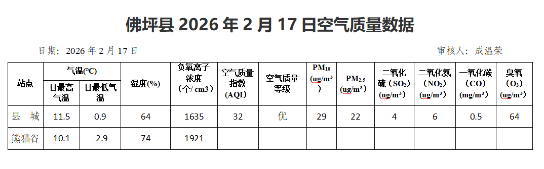佛坪县2026年2月17日空气质量数据