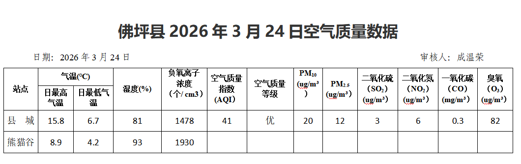 佛坪县2026年3月24日空气质量数据