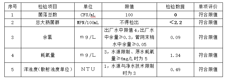 佛坪县自来水公司生活饮用水检验结果