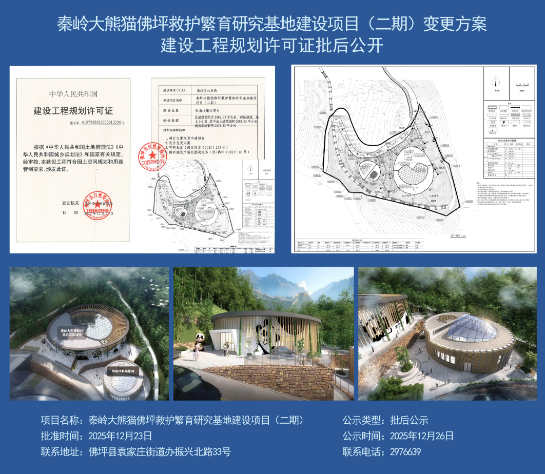 秦岭大熊猫佛坪救护繁育研究基地建设项目(二期)变更方案批后公开